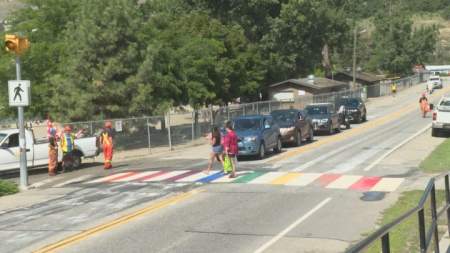 The crosswalk on Kalamalka Road, near Kal Beach, was installed in 2017 as a symbol of inclusion.
