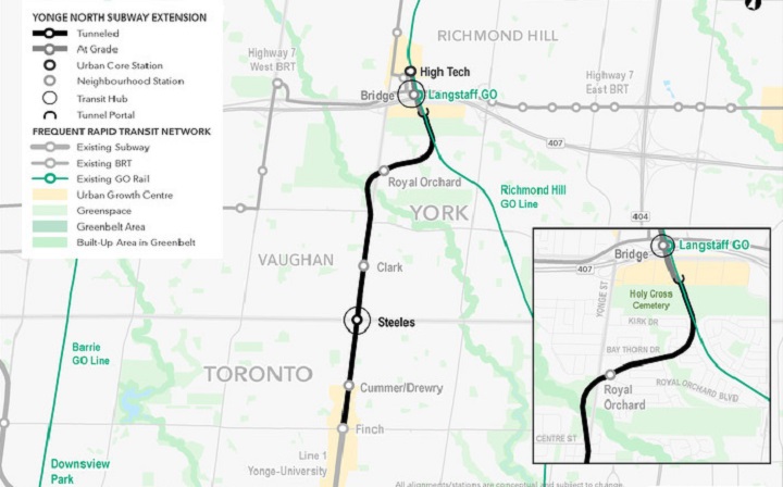An initial business case by Metrolinx Thursday morning outlined how the planned Line 1 extension will be shifting routes slightly in the north end in order to avoid a cemetery and will need to run partially above ground along the existing rail corridor in an effort to contain the price of bringing the line to the Richmond Hill Centre Transit Terminal area north of Highway 7 from Finch station.