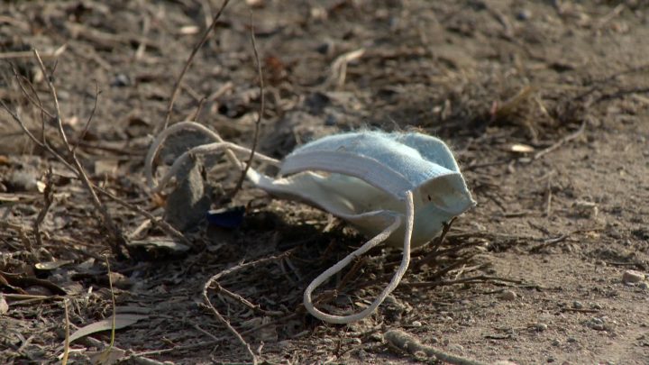 But in Saskatoon, more mask litter is being left on trails. The Meewasin Valley Authority (MVA) said it’s seeing more PPE being left behind on trails, especially now that snow is melting.