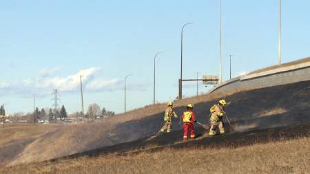 At around 11 a.m. Friday morning, smoke could be seen billowing over Memorial Drive as Calgary Fire crews responded to a grass fire climbing a hill towards the busy road near the Max Bell Arena.