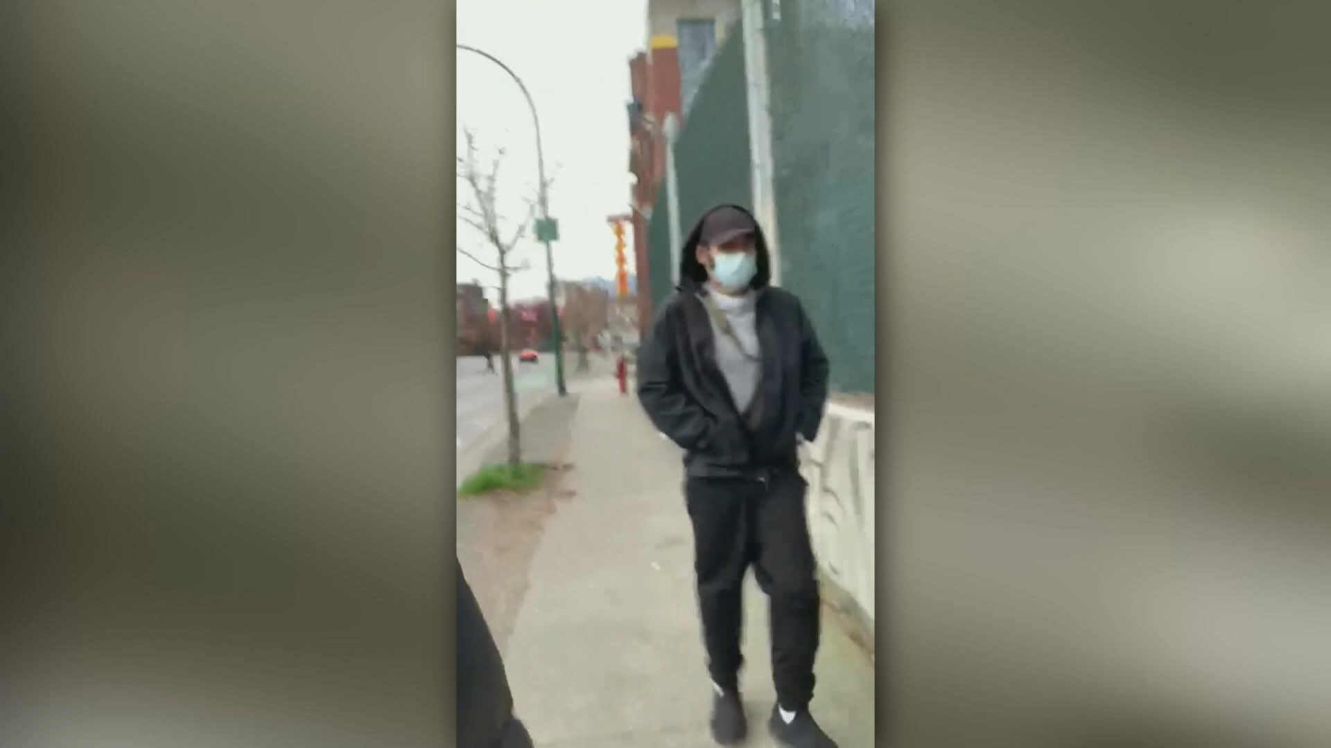 Jamie Coutts filmed the frightening encounter, which happened Wednesday, as a man relentlessly and silently pursued her through an area of downtown near Keefer and Columbia streets.