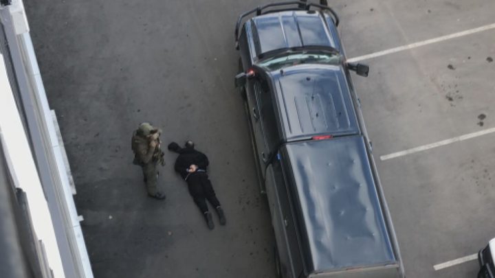 In the video, a man is seen being arrested by RCMP officers dressed in tactical gear, armed with assault-style rifles and supported by a canine team.