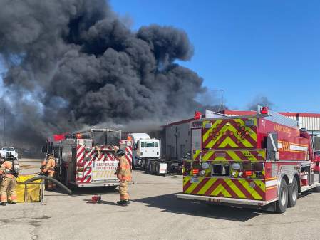 Fire crews responded to the Flying M Truck Service and Collision Centre at 7340 Colonel Talbot Rd., between Southminster Bourne and Orr Drive near the city’s southern limit, around 3:15 p.m. Monday.