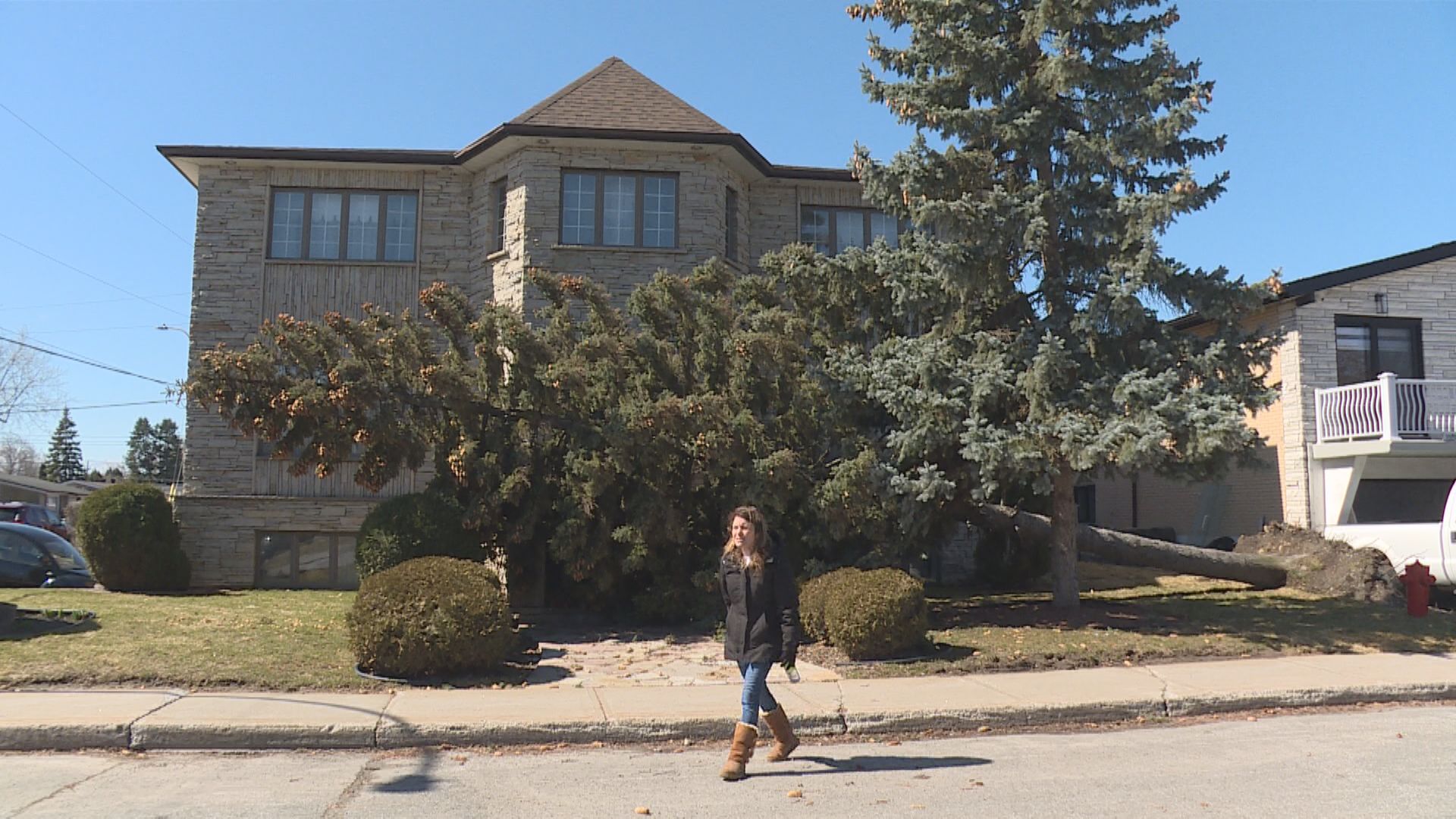 The toppled-over tree had come from her neighbour Sestina Sacratini’s yard. Sacratini said her husband discovered the fallen tree when he looked out the window Monday morning.