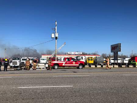 In an update on Tuesday, police say fire investigators are on scene to determine the origin and cause of the blaze at the Flying M Truck Service and Collision Centre at 7340 Colonel Talbot Rd., between Southminster Bourne and Orr Drive.