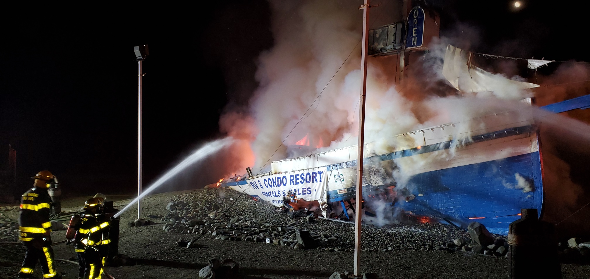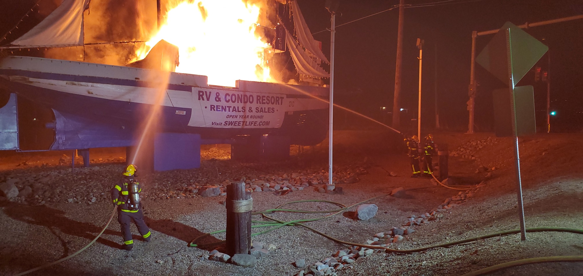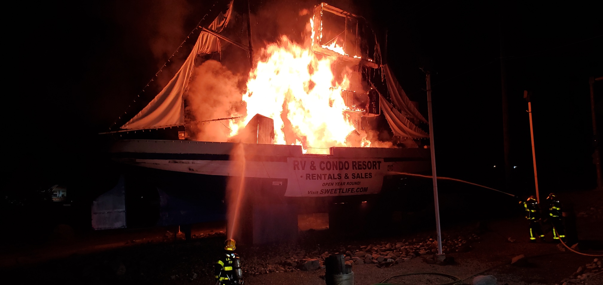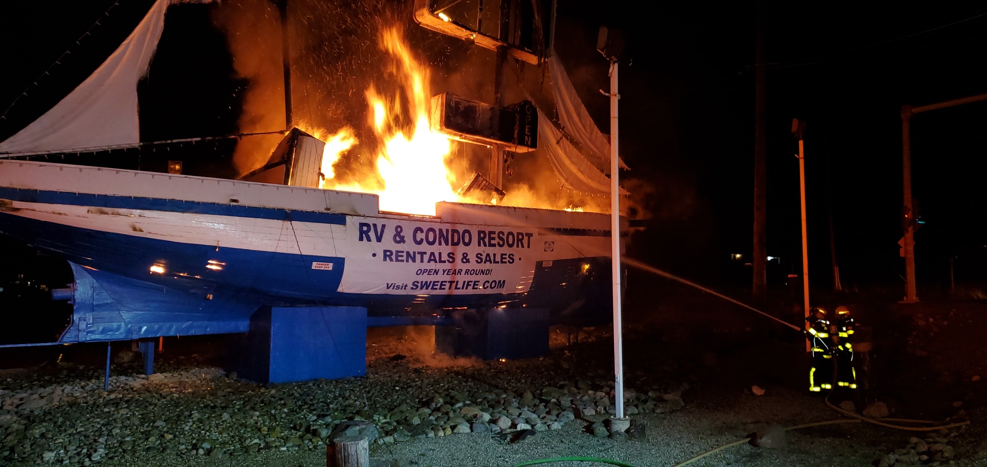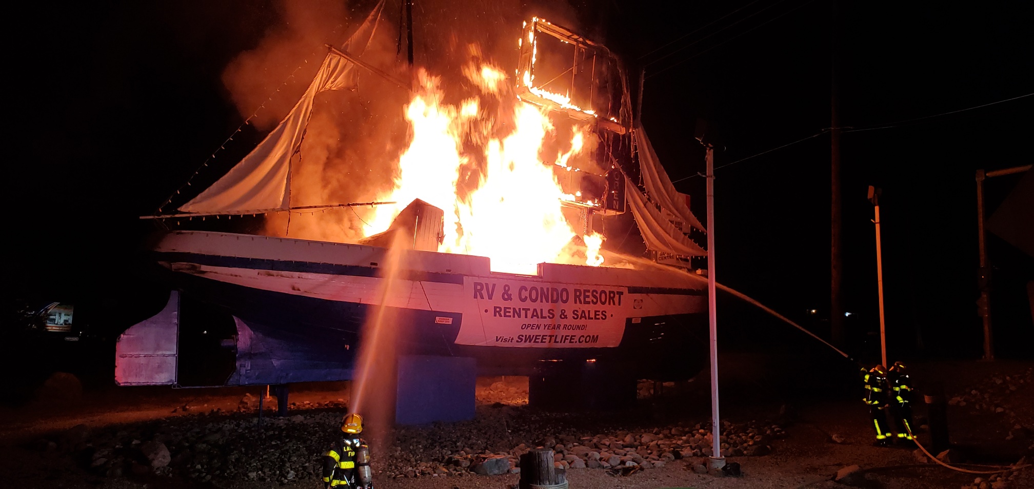 Fire quickly destroyed a large sailboat on the border of Kelowna and Lake Country overnight on Thursday.