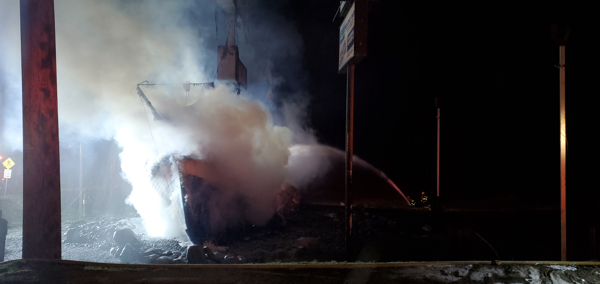 In the daylight on Thursday morning, all that was left of the boat was charred debris, cinder blocks and metal supports.