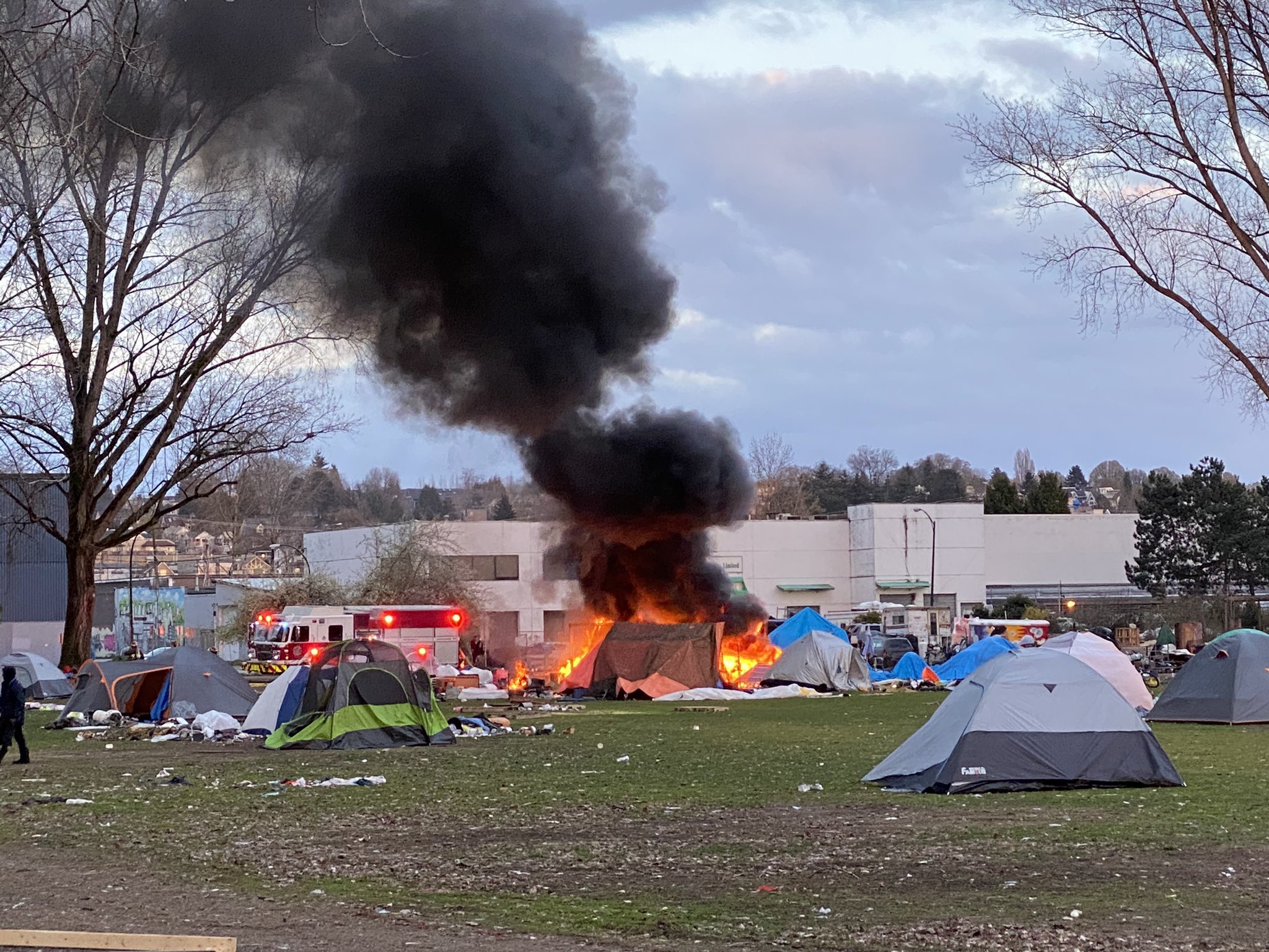 Firefighters were called to another tent fire at the Strathcona Park homeless encampment on Thursday evening.