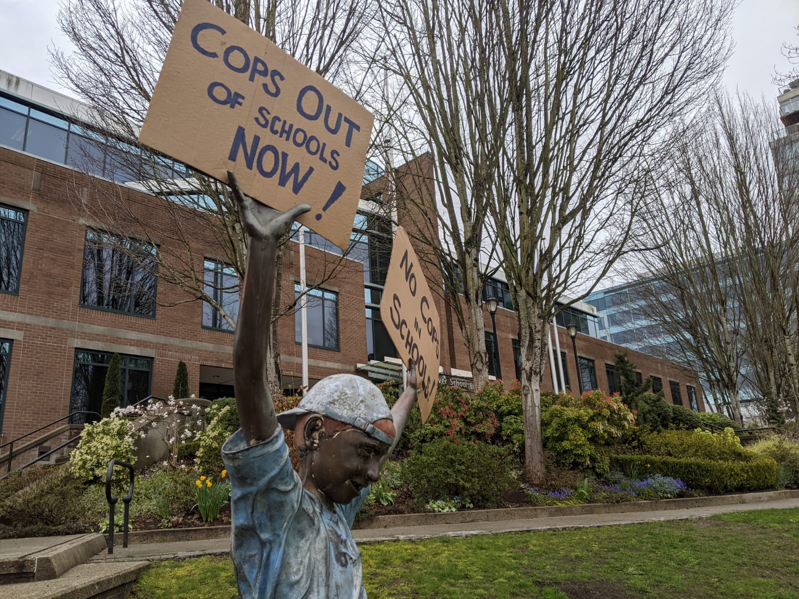 Vancouver youth who say their voices aren’t being heard gathered outside the city’s school board office Wednesday, ahead of a meeting focused on the future of police officers in schools.
