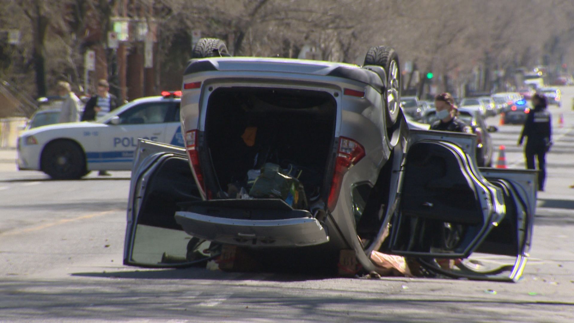 The driver hit the cyclist and witnesses told police the vehicle flipped over at the intersection of Papineau Avenue and St-Joseph Boulevard.