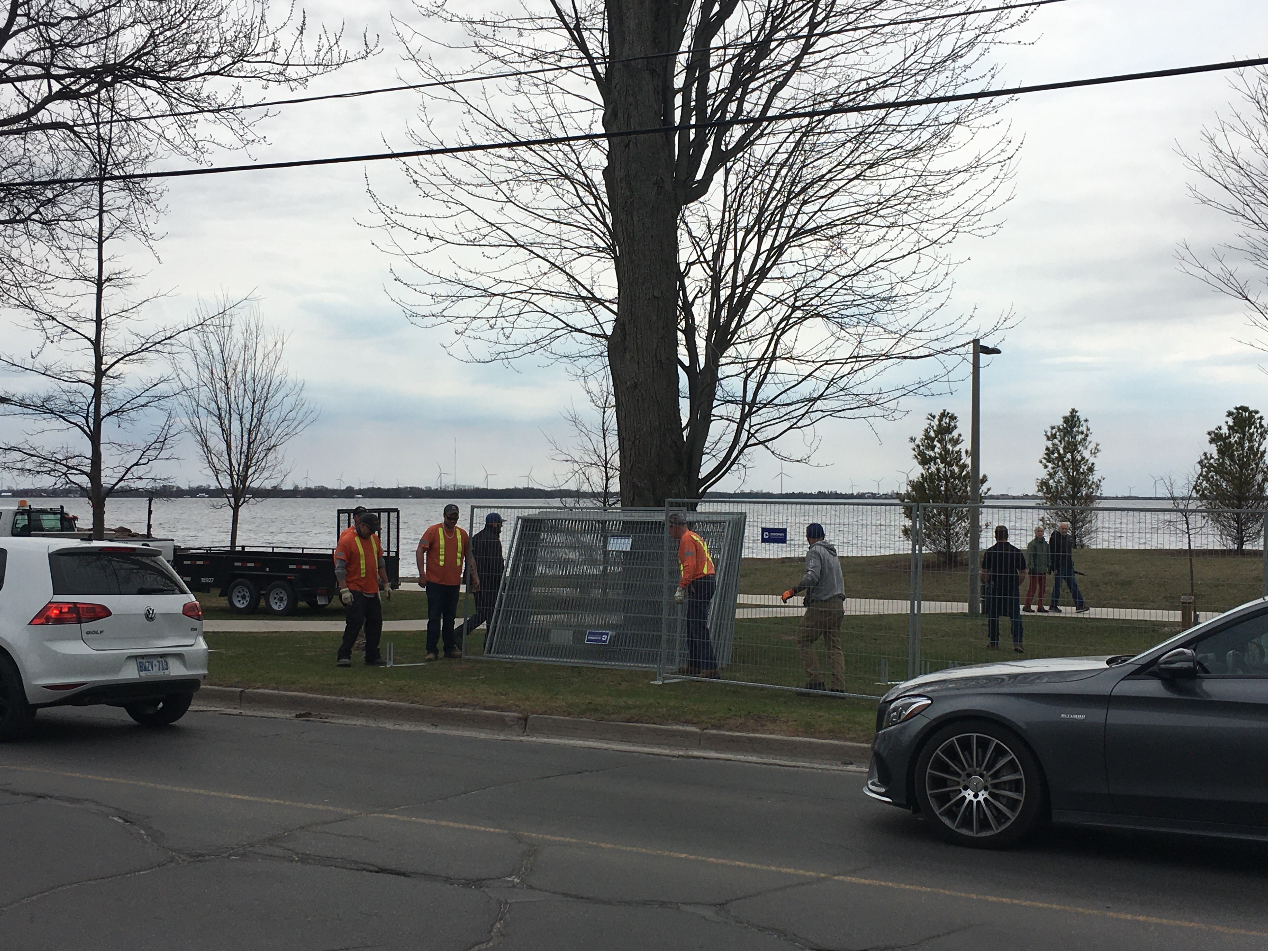 At noon Friday, city staff could be seen in the park erecting fencing to close the north, east, and west boundaries of Breakwater Park, which runs along King Street between Lower University Avenue and Beverley Street.
