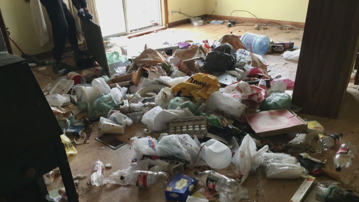 The state of the home resembled a horror movie with mounds of garbage, human and animal feces everywhere and damage to essentially every corner of every room.