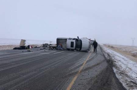 A witness tells 680 CJOB that a truck rolled over just before 7:30 a.m.