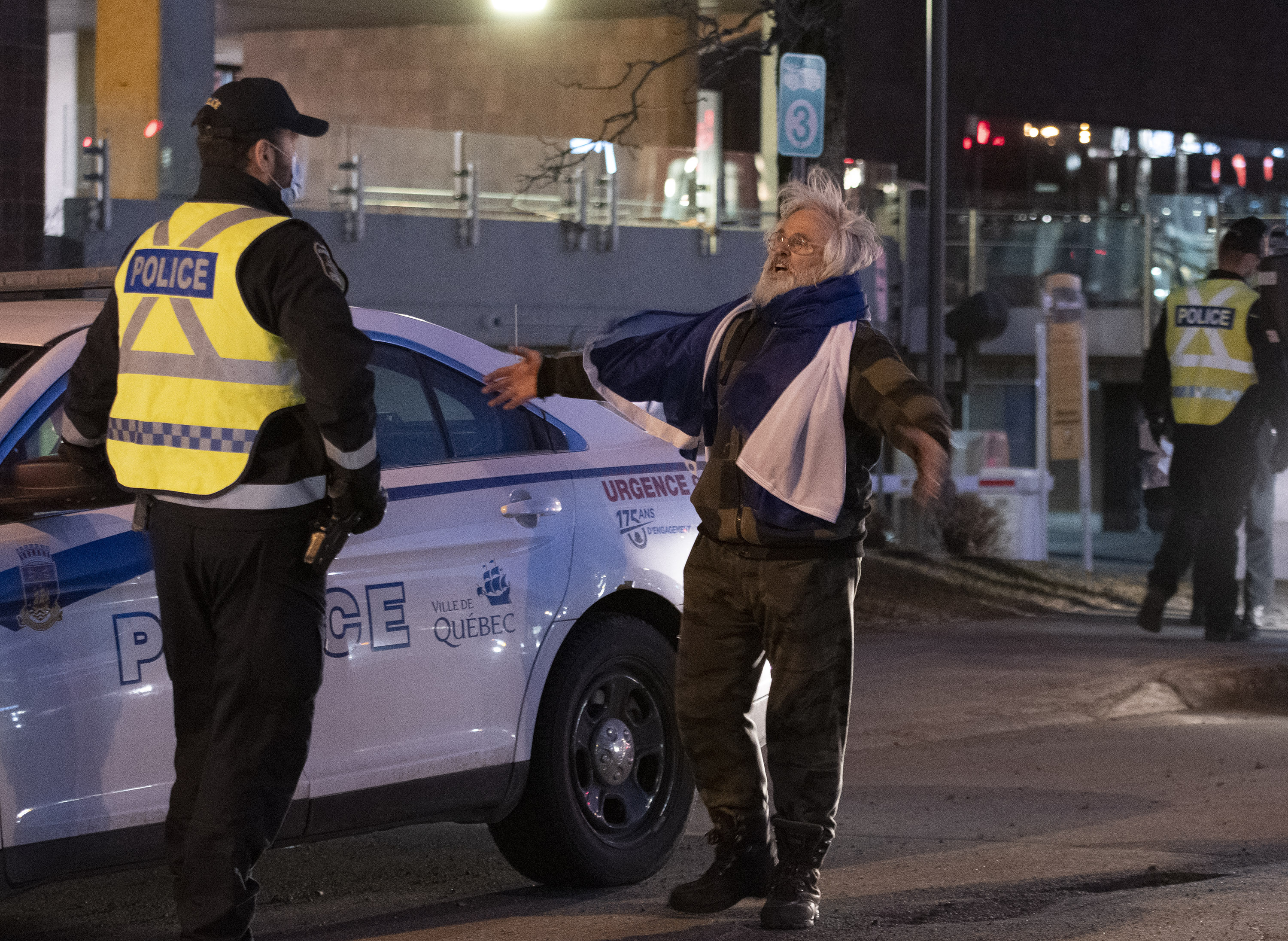The protest drew a small crowd outside the province’s public security ministry offices on Laurier Boulevard. Quebec City police say they arrested eight people and issued 12 tickets for non-compliance with the curfew.