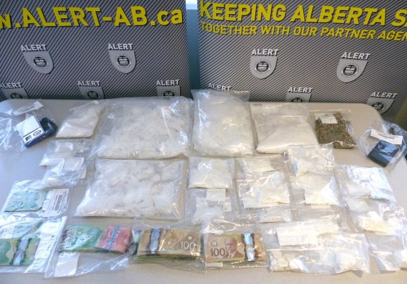 Alberta Law Enforcement Response Teams (ALERT) says members of its organized crime and gang unit searched four homes on March 30, at which time over $225,000 worth of drugs and cash was discovered.