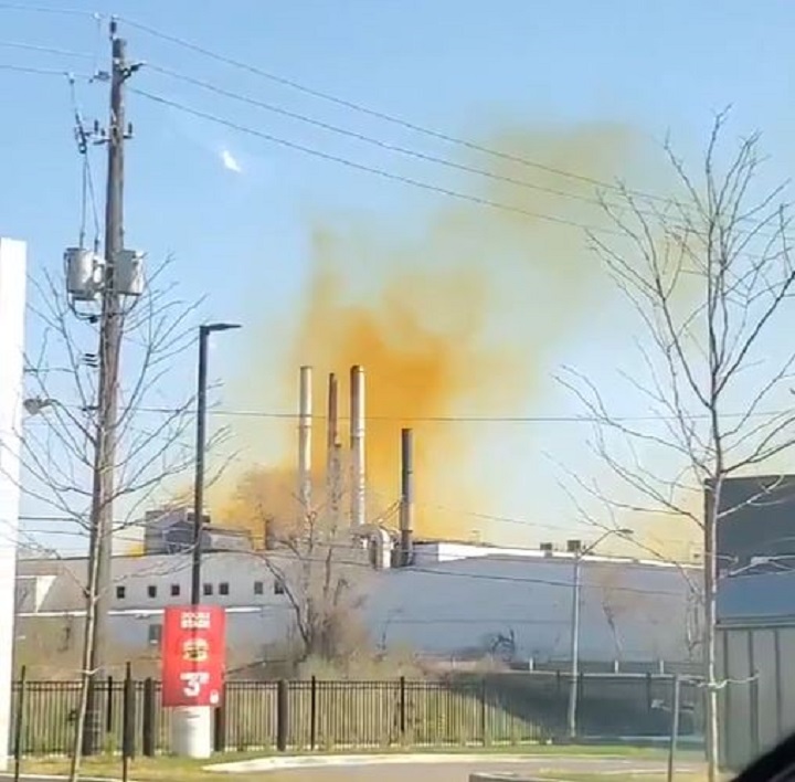 A Toronto fire spokesperson said firefighters responded to the incident as a chemical spill. An orange-coloured cloud of toxic smoke was seen coming from the building.