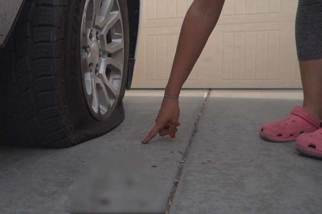 Wikoff’s husband found the finger and a trail of blood leading back to the neighbour’s home on Thursday morning, she told local station CBS 5. She also shared photos of the finger, as well as pictures of the slashed tires on her GMC Yukon.