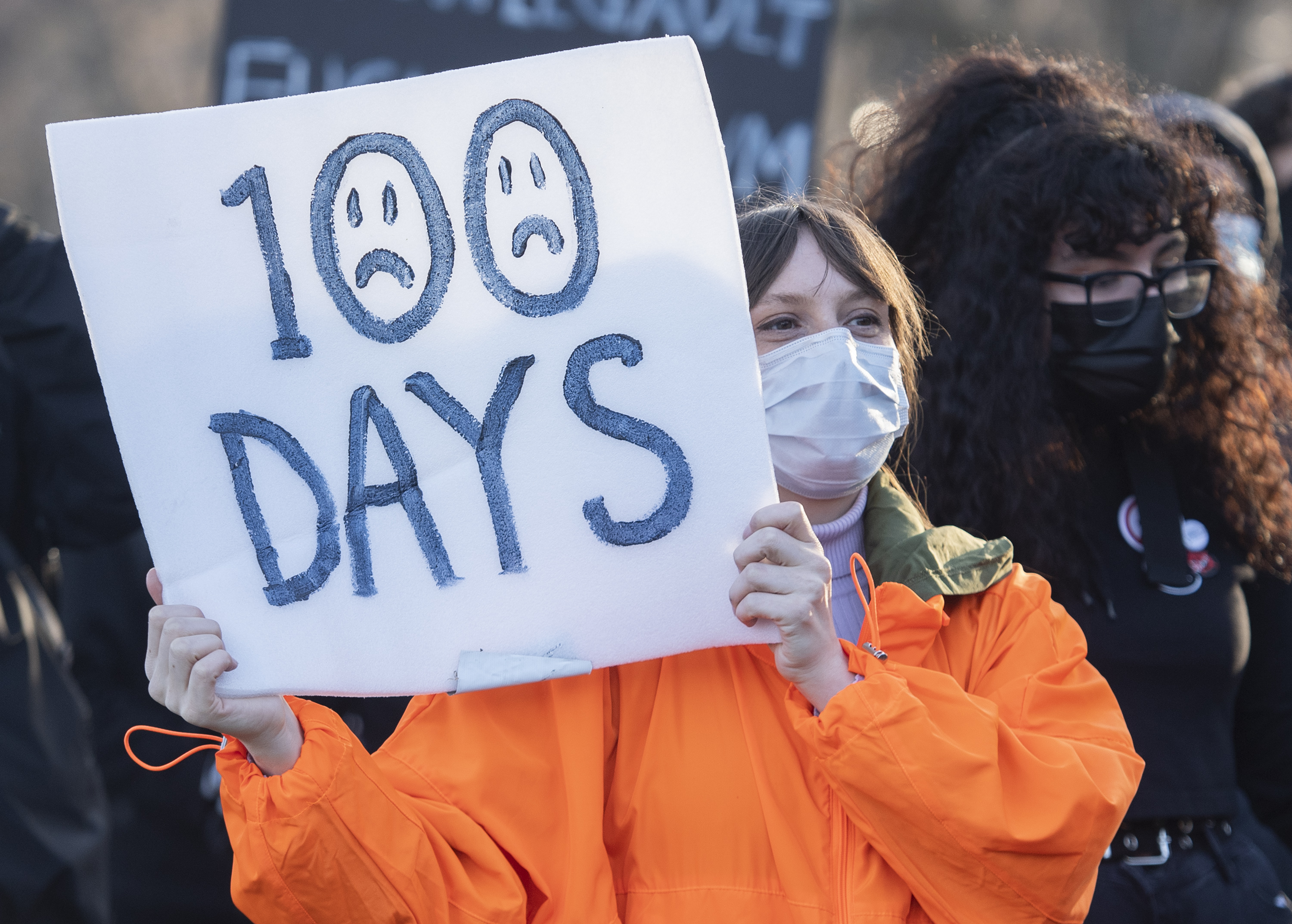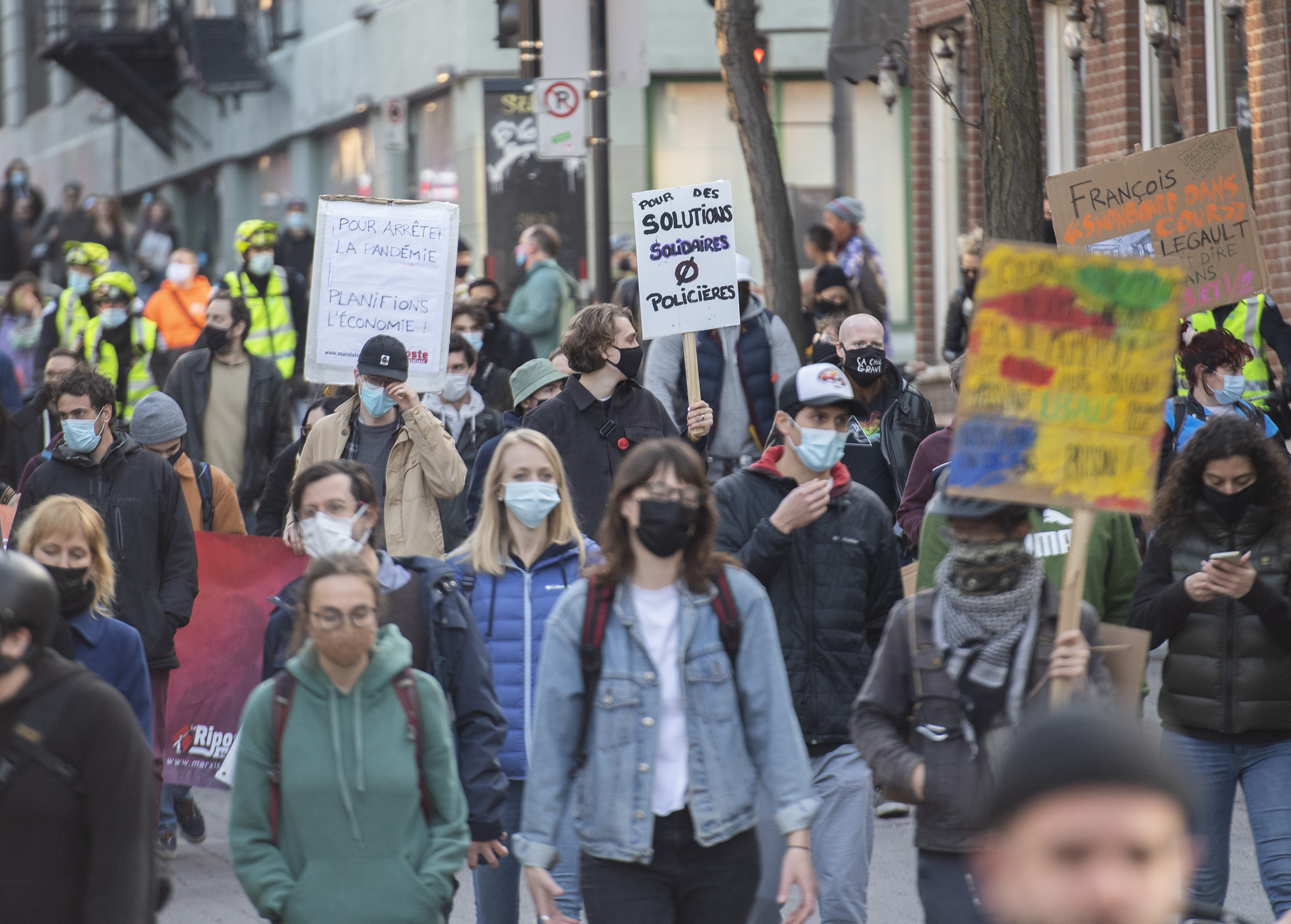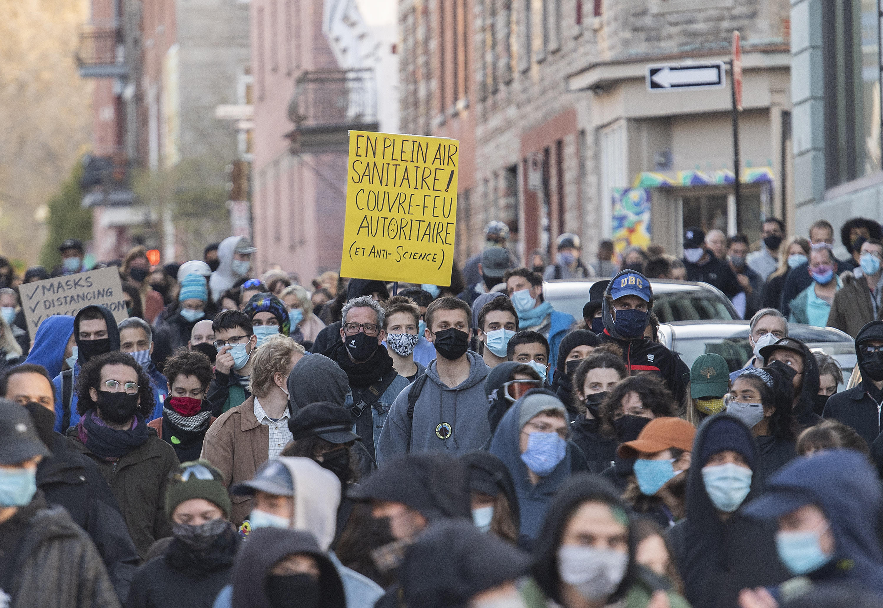 A group of masked protesters marched through the streets of Montreal on Sunday evening to denounce Quebec’s COVID-19 curfew that many described as unscientific and harmful to society’s most vulnerable.