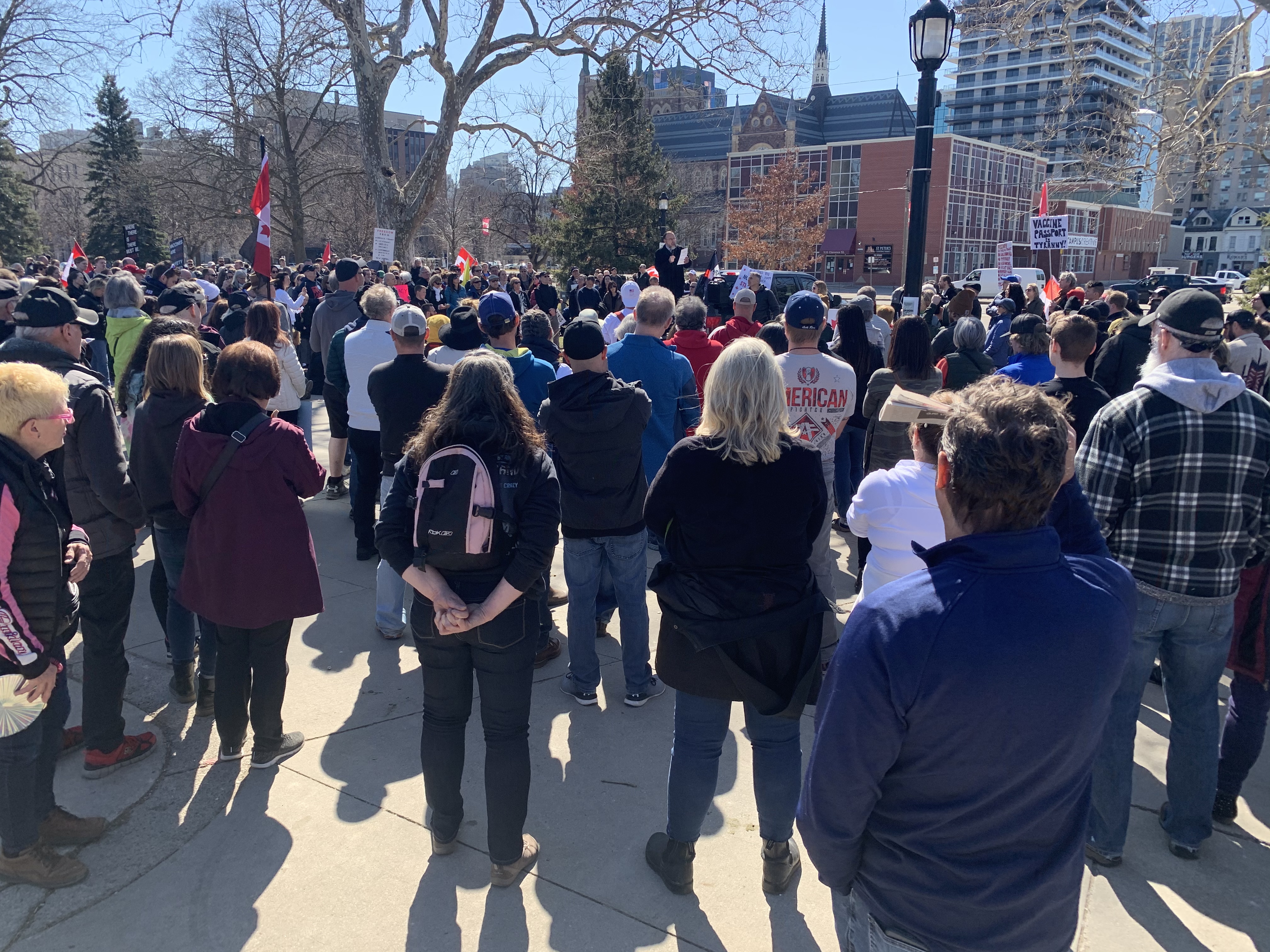 The rally was held on March 20 and saw hundreds gather in support of the “World Wide Rally for Freedom and Democracy,” an event protesting against COVID-19 restrictions.