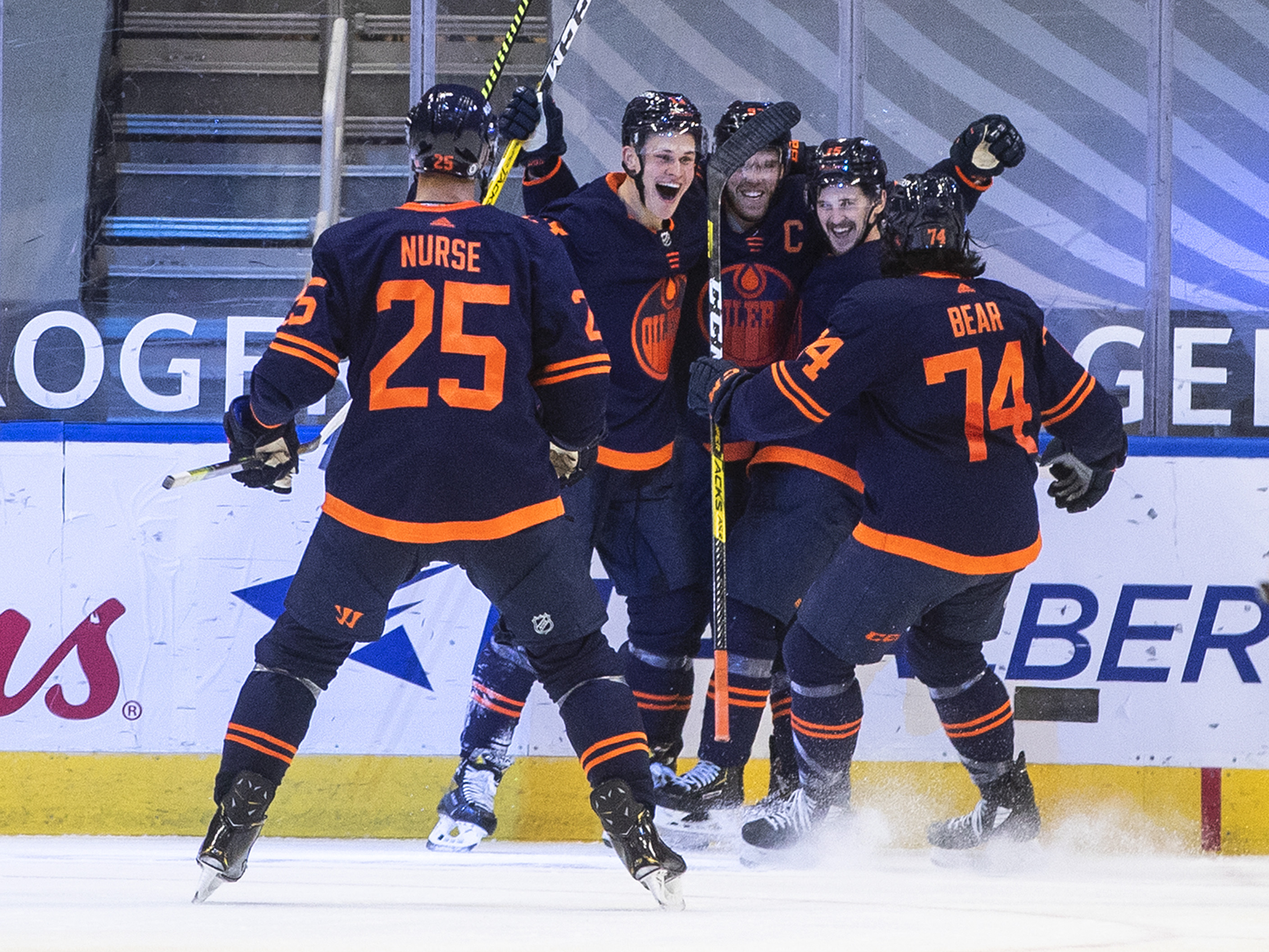 With 9:11 left in the third, McDavid fed Ethan Bear, who ripped in his first goal since February 6, 2020.