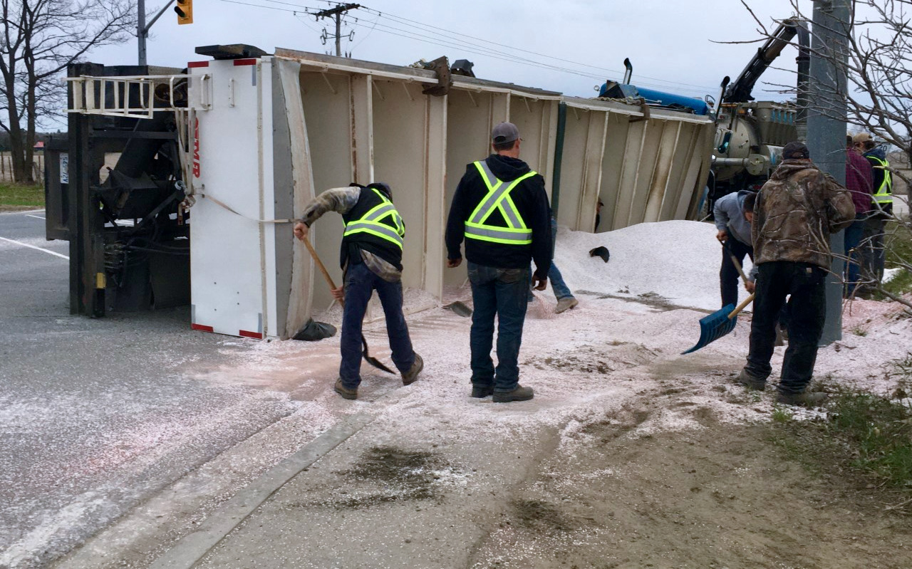 No injuries were reported after a truck hauling fertilizer rolled over Monday evening in the City of Kawartha Lakes.