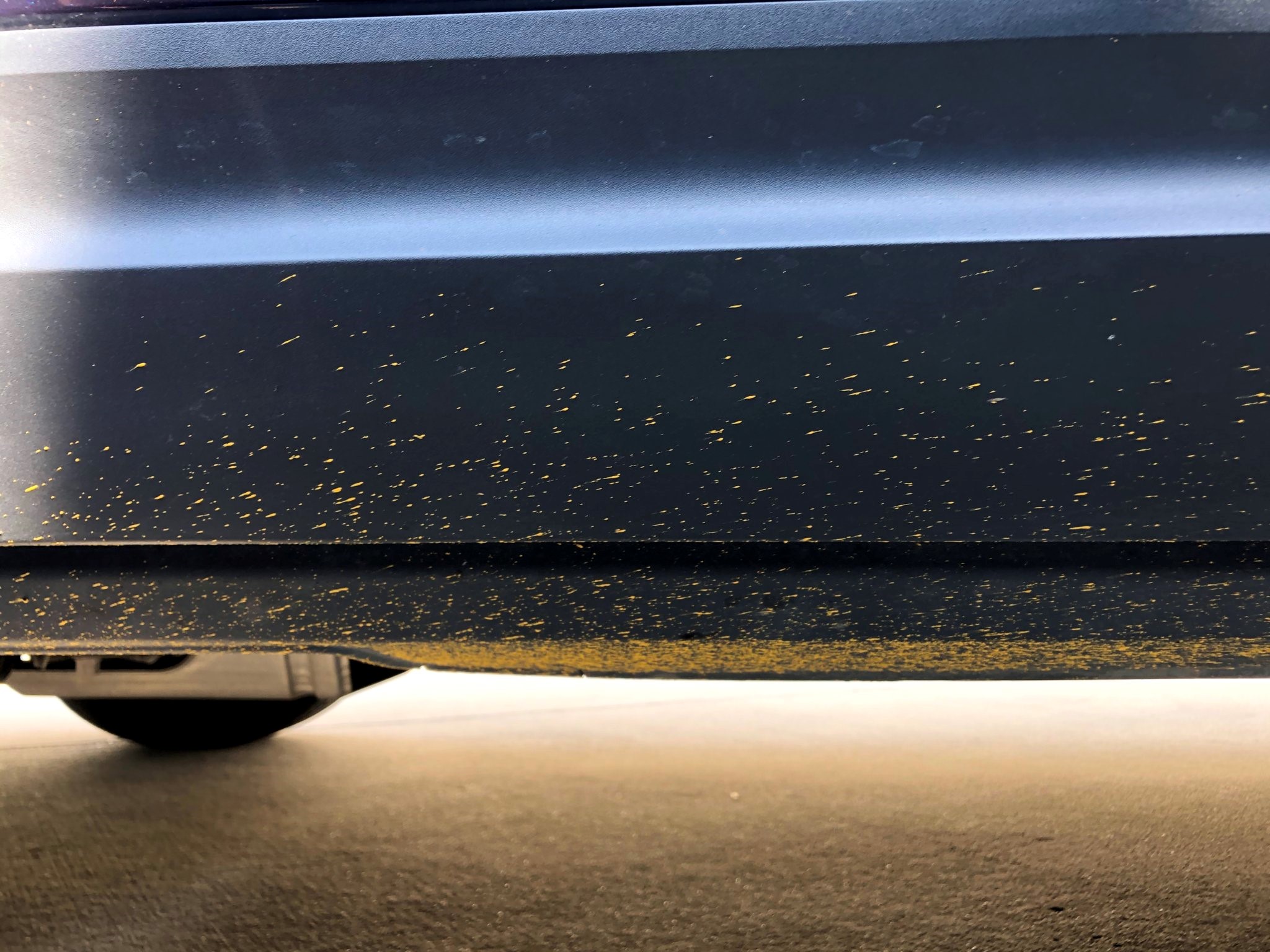 The entire lower section of the driver side of his truck had been sprayed with yellow paint including the wheel wells and tires.