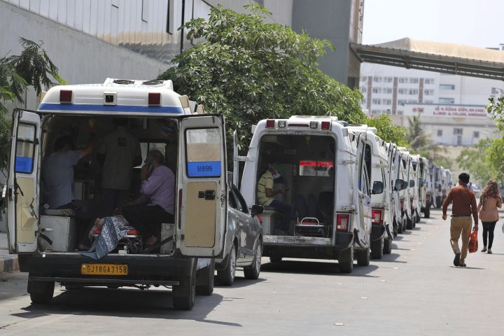 Ambulance sirens sounded throughout the day in the deserted streets of the capital, one of India’s worst hit cities, where a lockdown is in place to try and stem the transmission of the virus.