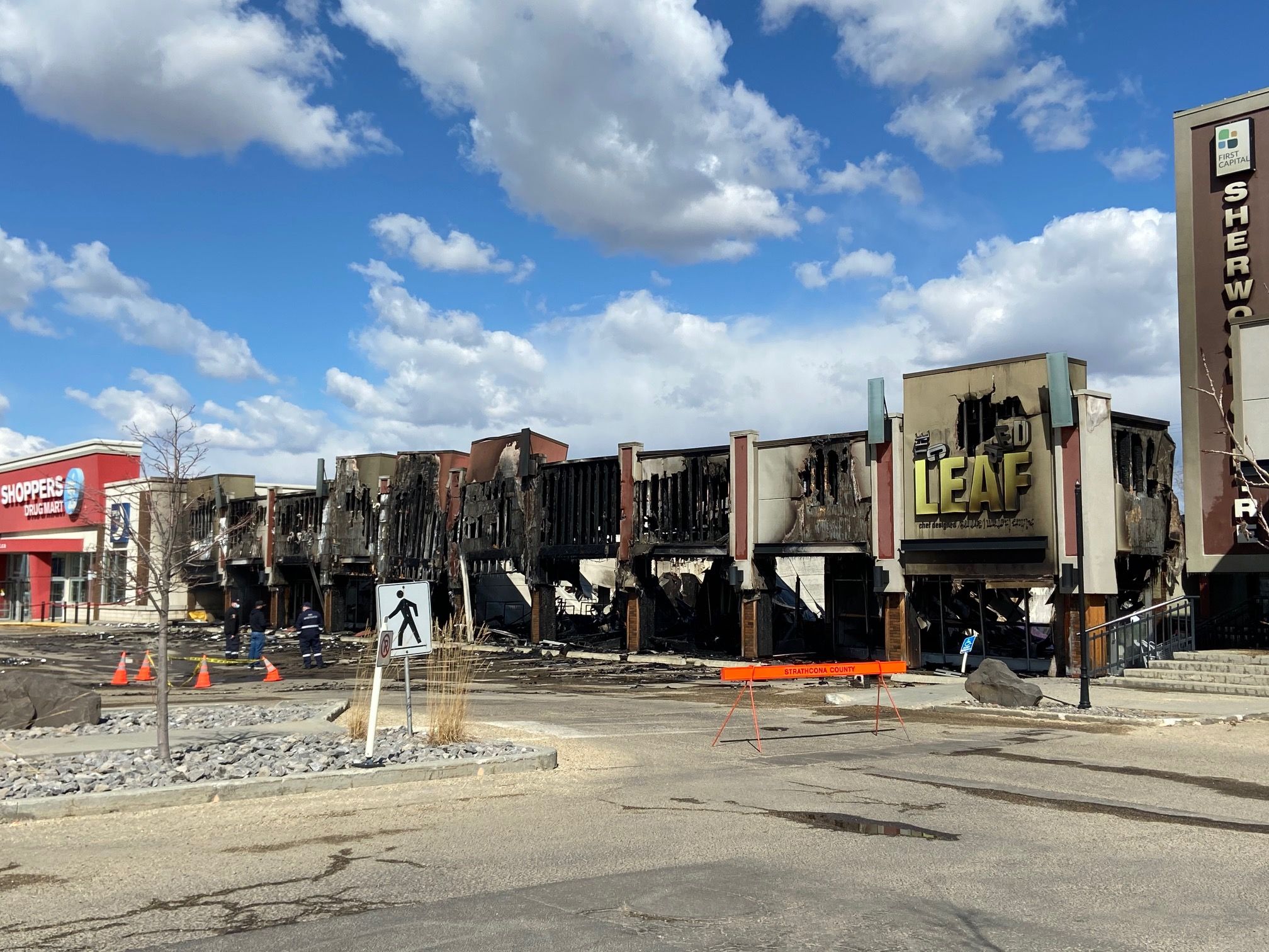 “Six of the seven buildings have been a complete loss. The seventh building is the Shoppers Drug Mart which has some water damage and some smoke inside but appears to be still doing alright,” Devin Capcara, deputy chief of operations with Strathcona county Emergency Service, said.