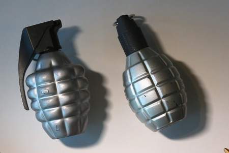Is that a hand grenade, or are you just happy to see someone playing a prank on the bomb squad?
