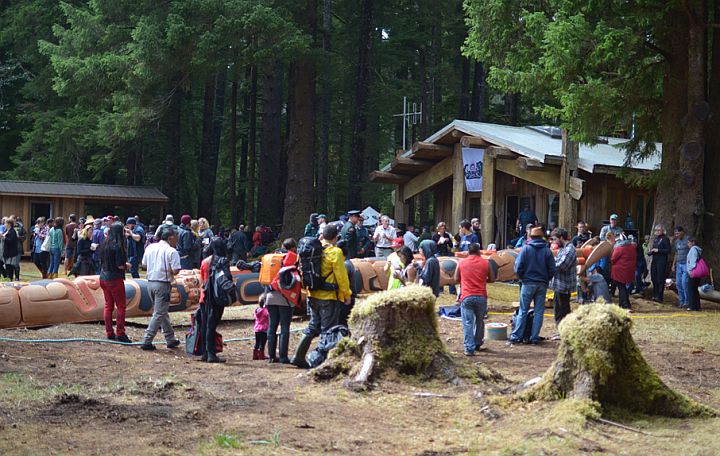 Hundreds gathered in the Gwaii Haanas National Park Reserve to watch the nearly 3,000 kilogram pole raised using six ropes and sheer manpower, the first such raising in over a century.