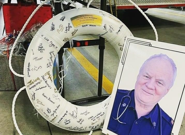 “How long have you been on the job?” someone shouts at Terry Raappana during a ceremony honouring his final shift as a paramedic in Vancouver on Tuesday night.