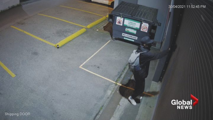 The owner of a Vancouver business is in disbelief over a surveillance video showing an alleged vandal spray-painting her shop over the weekend while recording the entire thing on a smartphone.