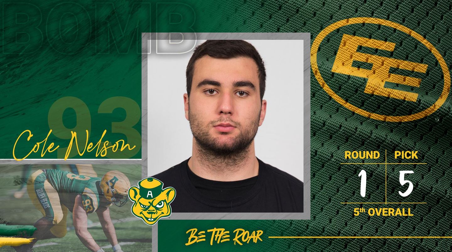 The Edmonton Football Team stayed home with their first round pick, fifth overall, by selecting University of Alberta Golden Bears defensive lineman Cole Nelson.