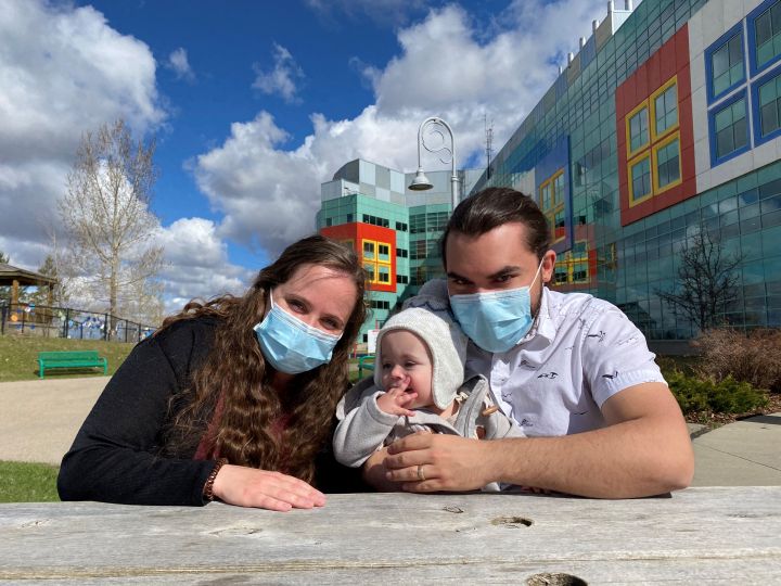 Calgarians Molly and Pat Wilding were having fun with their baby daughter on the playground outside the Alberta Children’s Hospital on Wednesday.