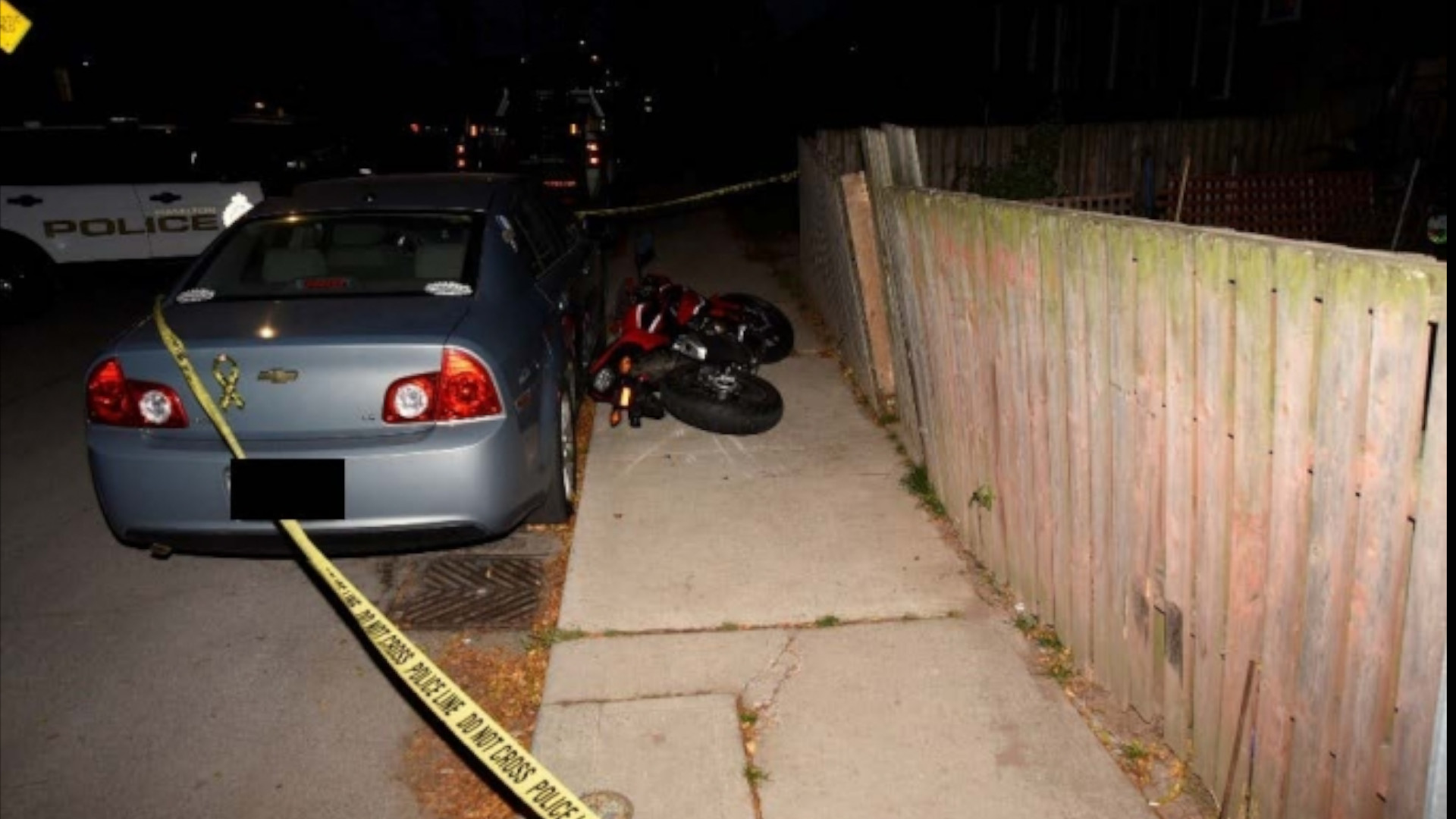 The motorcyclist tried to evade the police car and subsequently hopped a sidewalk and crashed into a residential fence.