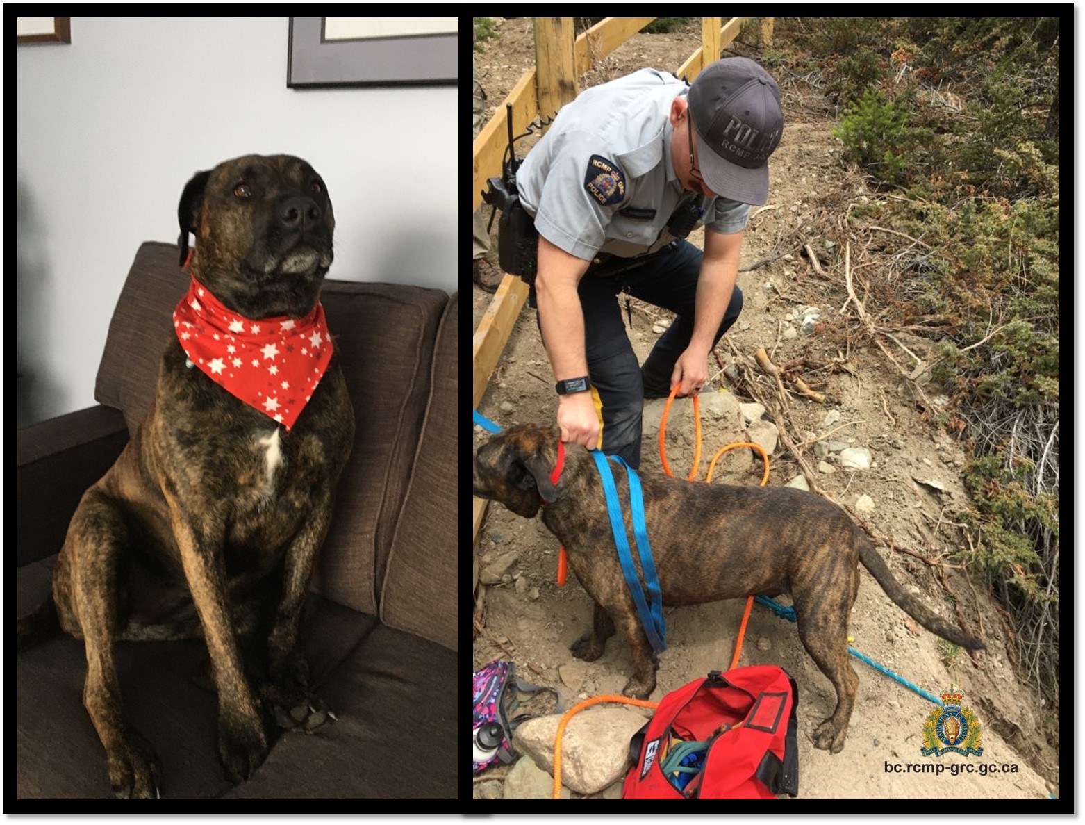 A large B.C. dog is safe and sound, following a daring rescue from a cliff in B.C.’s Interior.