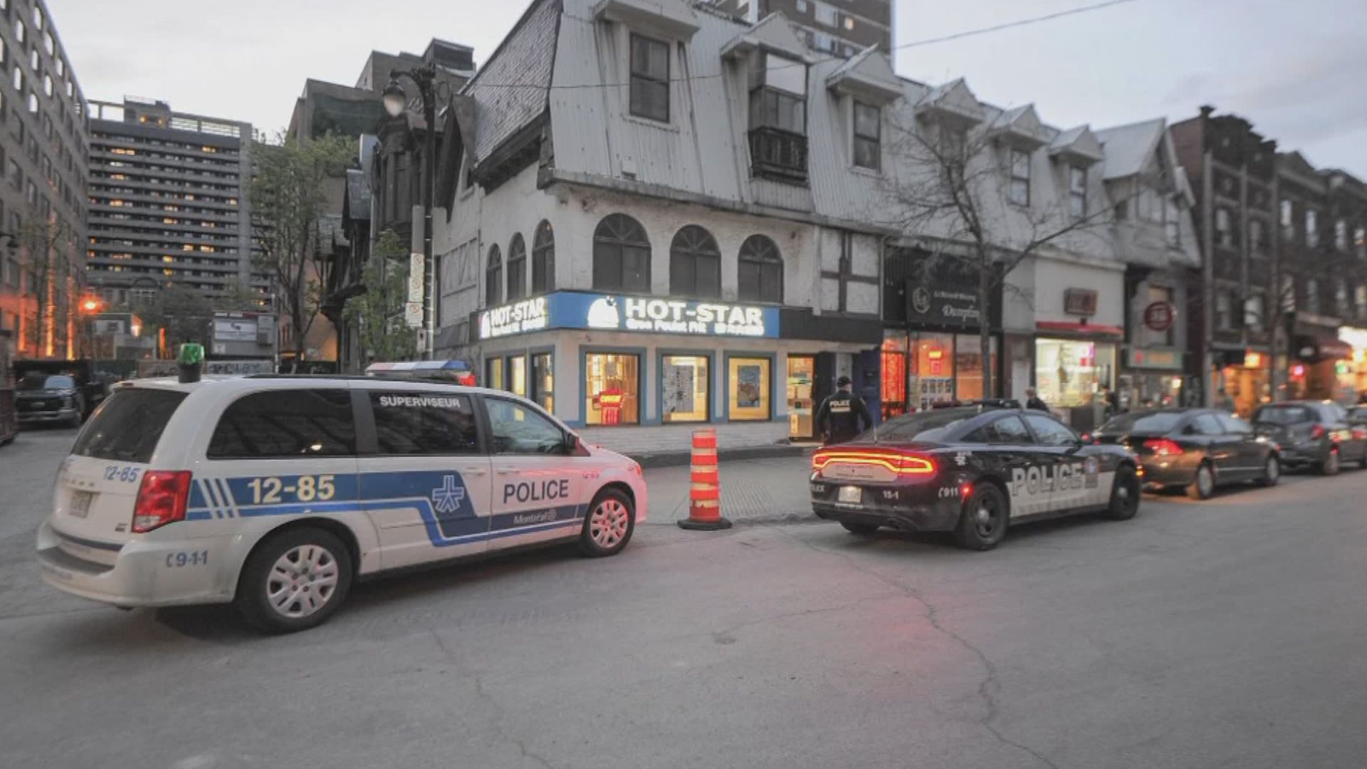 The first incident happened at around 6:40 p.m. when a 27-year-old man was stabbed in the upper body while walking on Sainte-Catherine Street near Metcalfe Street. Five suspects fled the scene by car but were stopped by police a short distance away on Sherbrooke Street near Parc Avenue.