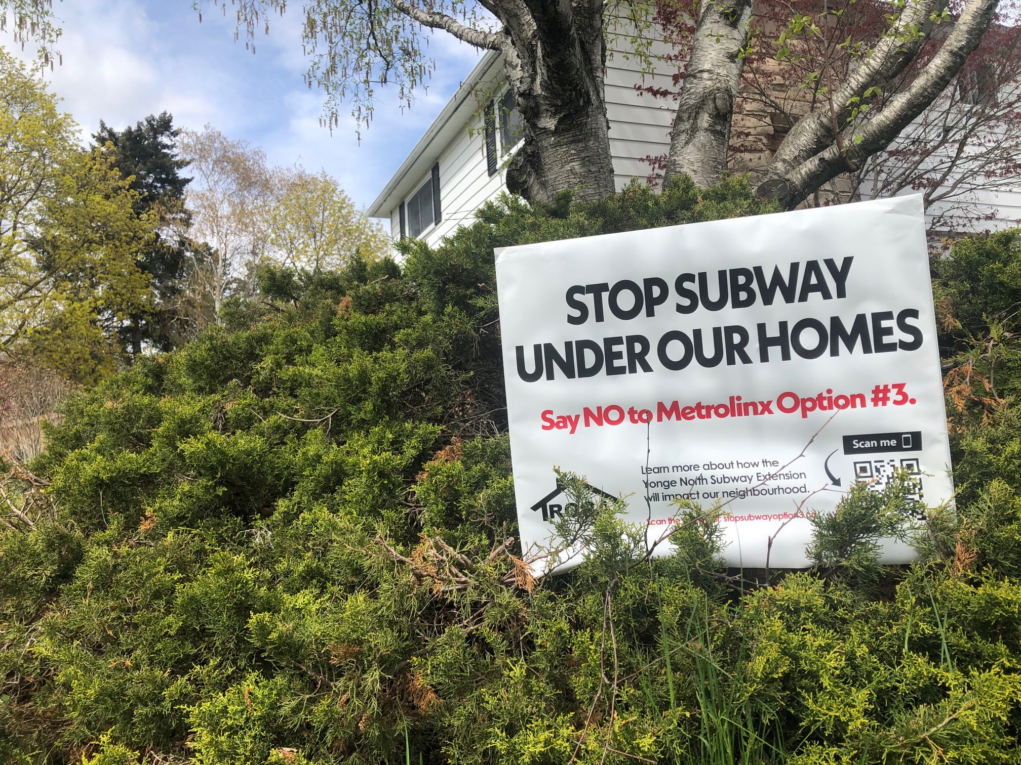 Dozens of homes in the neighbourhood are already sporting signs in protest of the subway route. On Saturday, residents will be carrying signs like them as they hold a physically distanced protest along Yonge Street.