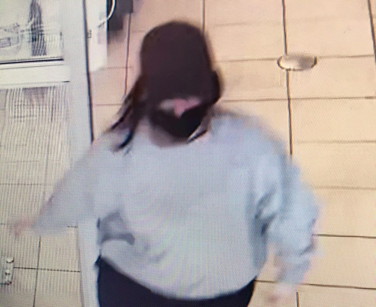 One suspect is described as a woman between 20 and 25 years old with short dark hair. She was wearing a light grey sweater, black sweatpants with a Nike logo on her left thigh, black shoes, a baseball cap and a black mask during the March 24 incident.