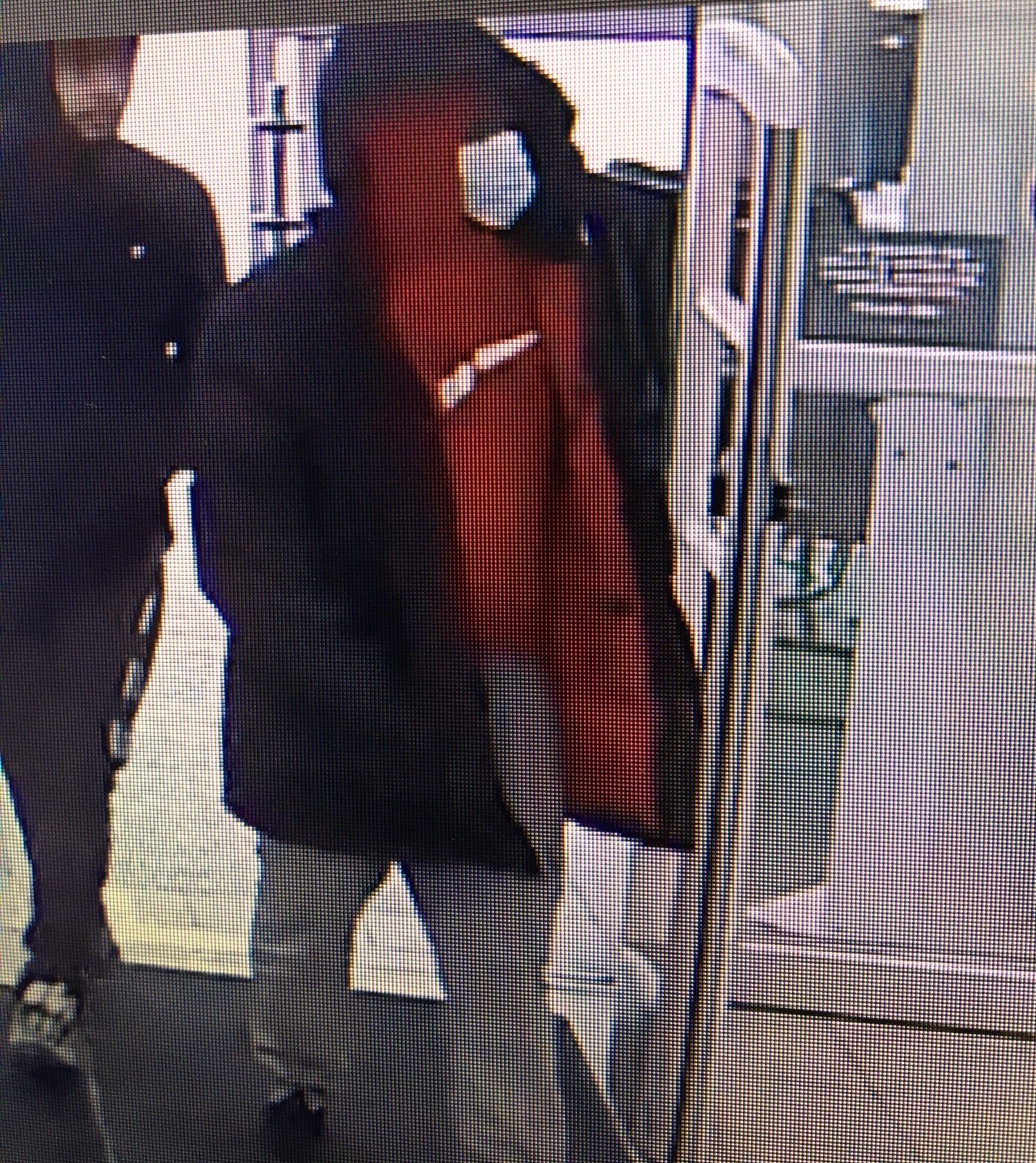 The third suspect is said to be a 20- to 30-year-old man who was wearing a red hooded sweater with a large Nike symbol, grey sweatpants, a black hooded winter coat, black shoes and a blue surgical mask.