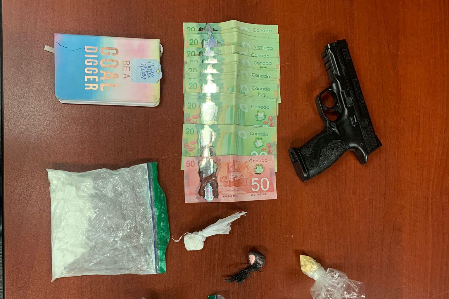 Workman was also found with a replica firearm and a large quantity of cash, police say.