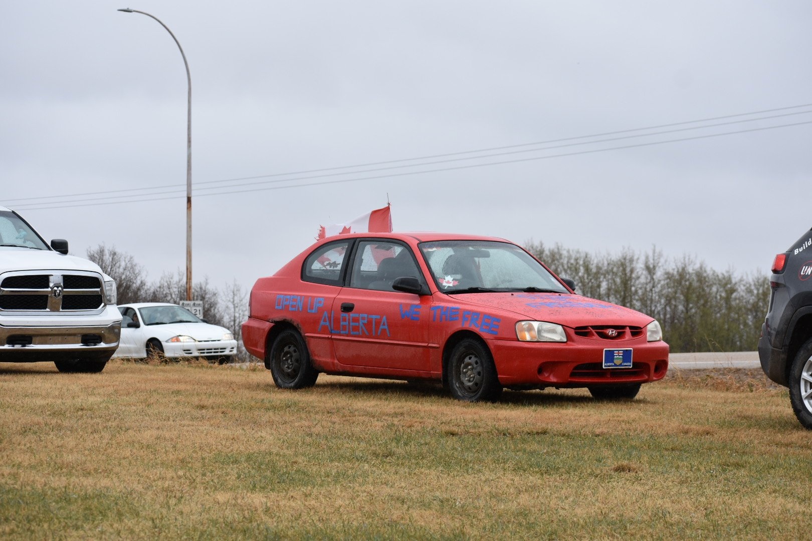 A “Save Alberta Campout Protest” was held Saturday outside the Whistle Stop Café in the hamlet of Mirror, Alta., to support owner Chris Scott as health officials had closed his business earlier in the week.