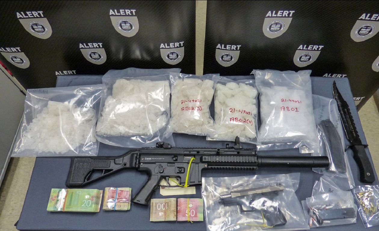 ALERT said Thomson was a federal parolee at the time and currently bound by four court-ordered firearms prohibitions. Thomson has been charged with 17 offences including possession of drugs for the purpose of trafficking, possession of proceeds of crime and 14 firearms-related offences.