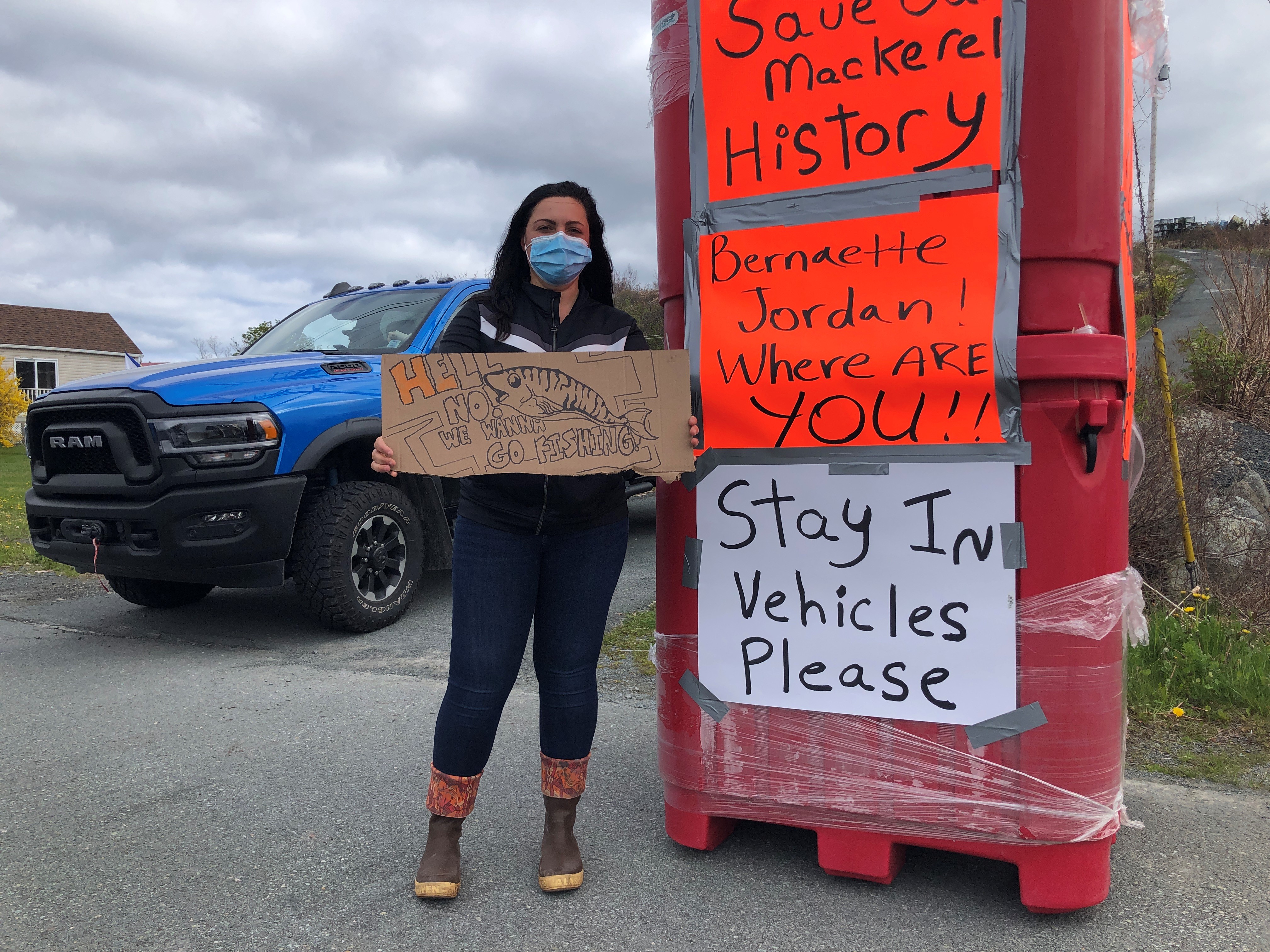 Members of the Prospect Area Full-Time Fishermen’s Association gathered at the entrance to the government wharf in West Dover, N.S. Wednesday evening to demand answers on what’s to become of the mackerel season.