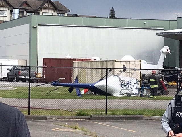 Police say two occupants of a helicopter that crashed at Langley Regional Airport on Thursday were able to walk away from the wreck.