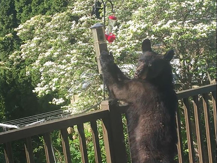 “It’s not uncommon to see bears in the area, but it’s the first one I’ve seen one looking at (bird feeders).”