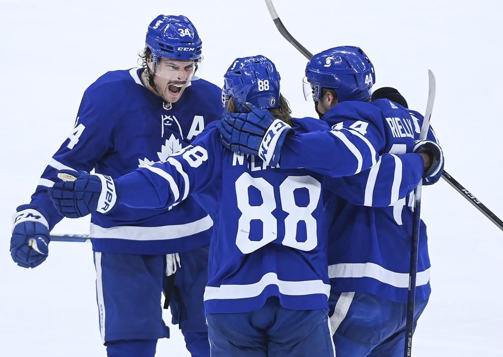 William Nylander, with a goal and an assist, Jason Spezza, Rasmus Sandin and Alexander Kerfoot, into an empty net, also scored for Toronto, which got 22 saves from Jack Campbell. Mitch Marner chipped in with two helpers as the Leafs’ struggling power play connected on two opportunities in the same game for the first time since March 3.