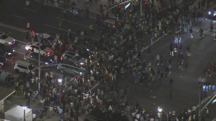 Video footage from the scene shows officers dressed in riot helmets shutting streets to control the crowd and, in some instances, firing less-lethal rounds. Police said some people threw bottles, rocks and fireworks at officers.
