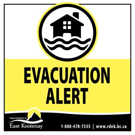 An evacuation alert has been issued for 229 homes and properties in the Fairmont Hot Springs and Cold Spring Creek area due to flooding and debris in the region.