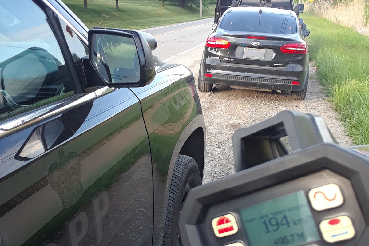 A 19-year-old man from Ingersoll will be without his licence and vehicle for a while after provincial police say he was clocked travelling 194 km/h in Cambridge recently.